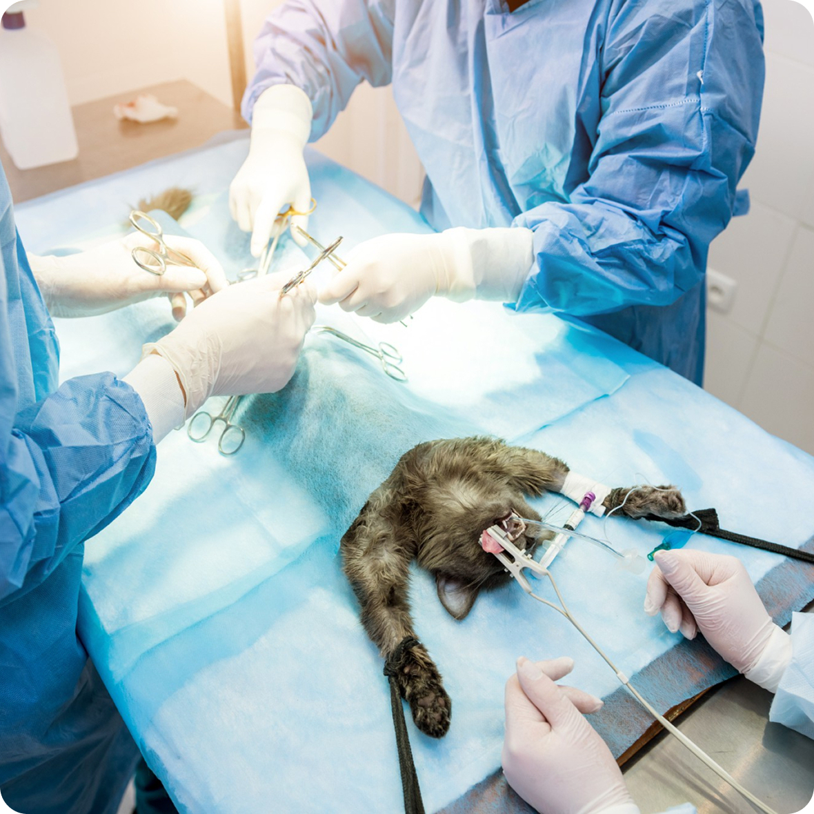 A műtétek elvégzése altatásban, a legkorszerűbb humán gyakorlatban is használt altatógépekkel, ill. altatógázokkal történik, teljes körű monitorozás (pulzoximéter, EKG, capnograph, vérnyomásmérés) és aneszteziológus munkatárs felügyelete mellett.